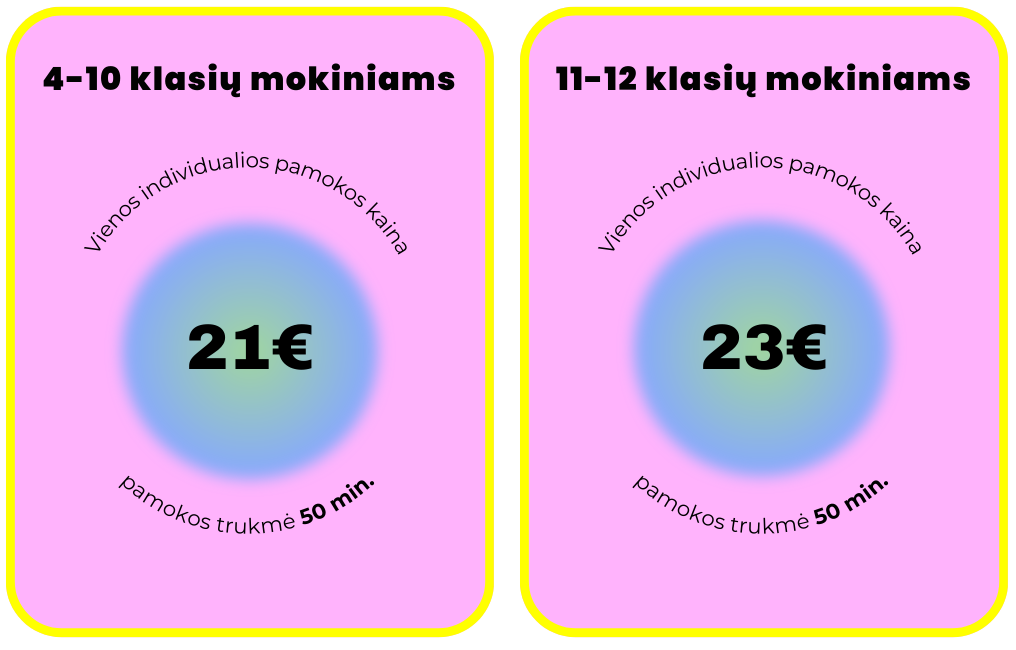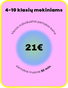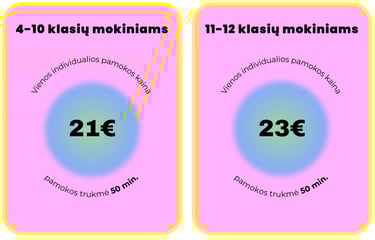 Mes siūlome individualias nuotolines pamokas, pritaikytas pagal kiekvieno mokinio poreikius. Užtikriname lankstų tvarkaraštį, kuris derinamas pagal užimtumą, ir garantuojame efektyvų bei malonų mokymosi procesą.